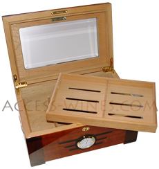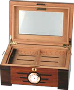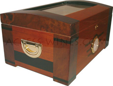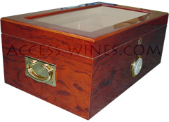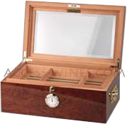 Coffret � cigares Passatore (+/- 150 cigares) - couvercle vitr� - poign�es lat�rales deuxi�me �tage avec plateau - fourni avec humidificateurs et hygrom�tre int�gr�
