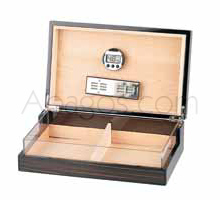 |  | 83.74 EUR | | | Coffret � cigares (+/- 40 cigares) - finition imitation �b�ne de Macassar avec vitre acrylique fourni avec humidificateur et hygrom�tre int�gr�