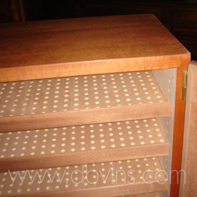 990 EUR (818.18 Hors TVA)Cave � cigares Don Varga (+/- 150 cigares) en acajou moir� - 1 porte vitr�e - clayettes � perforations circulaires - avec syst�me d'humidification HUMI-1 et hygrom�tre