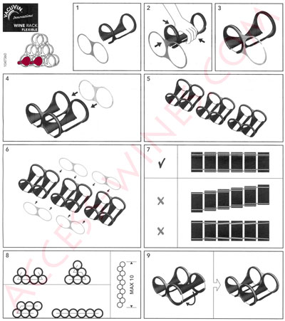 Les éléments sont solidement maintenus avec les paires d'anneaux en acier inoxydable, un élément mesure 18 cm en profondeur et l'anneau a un diamètre intérieur utilisable de 10cm, ce qui permet également de ranger les bouteilles de champagne.